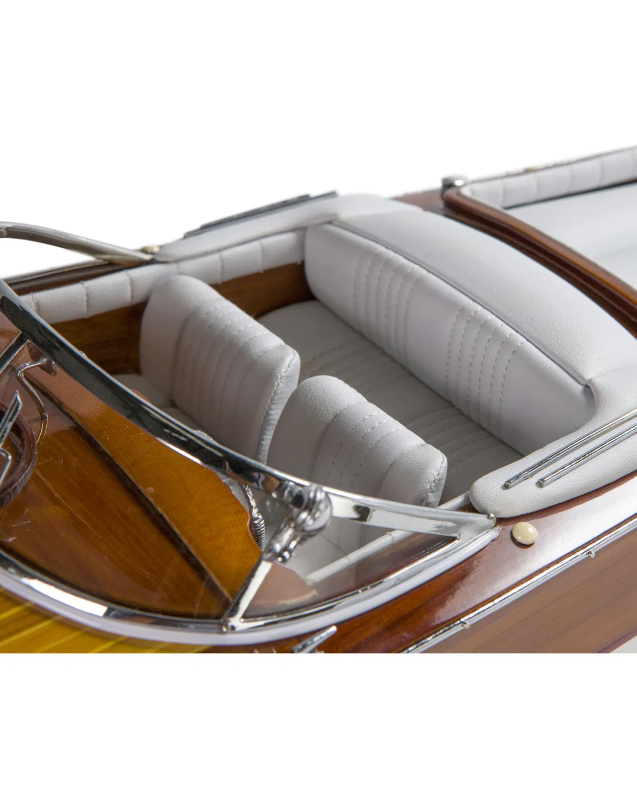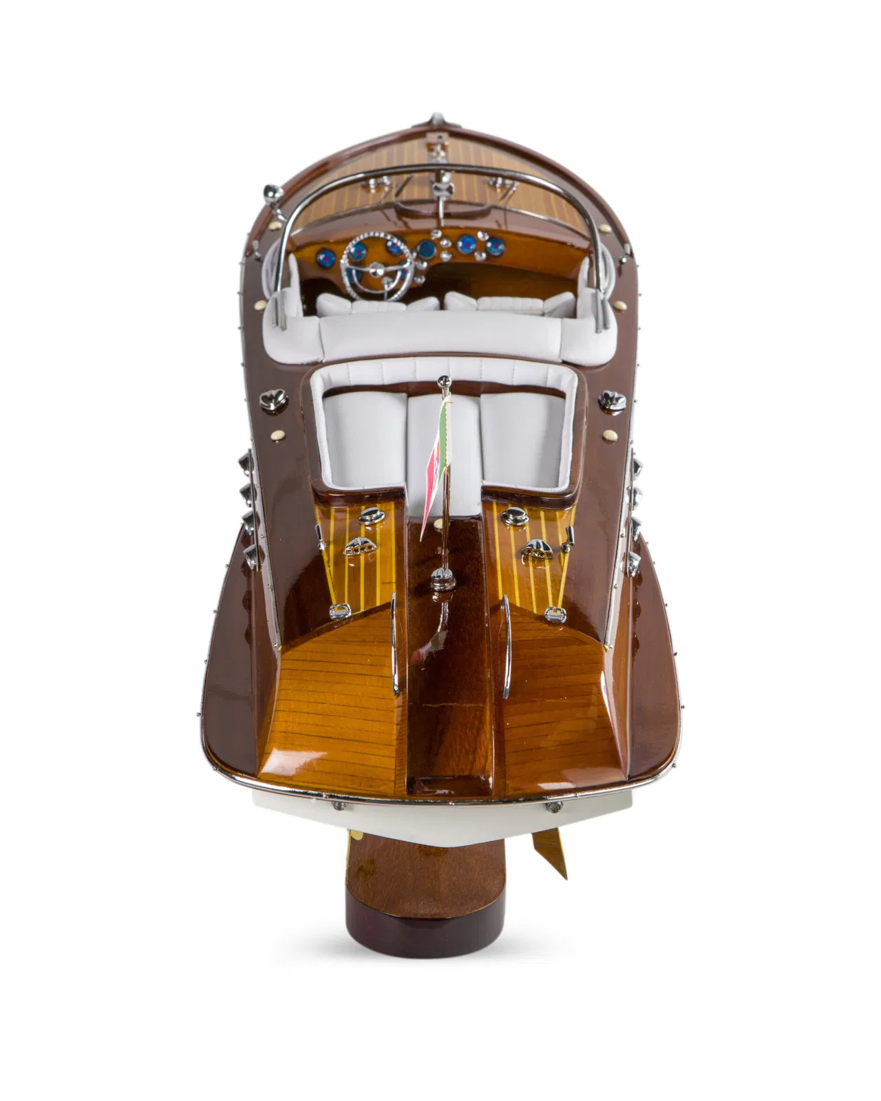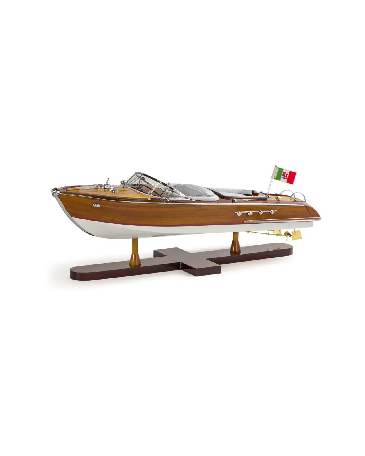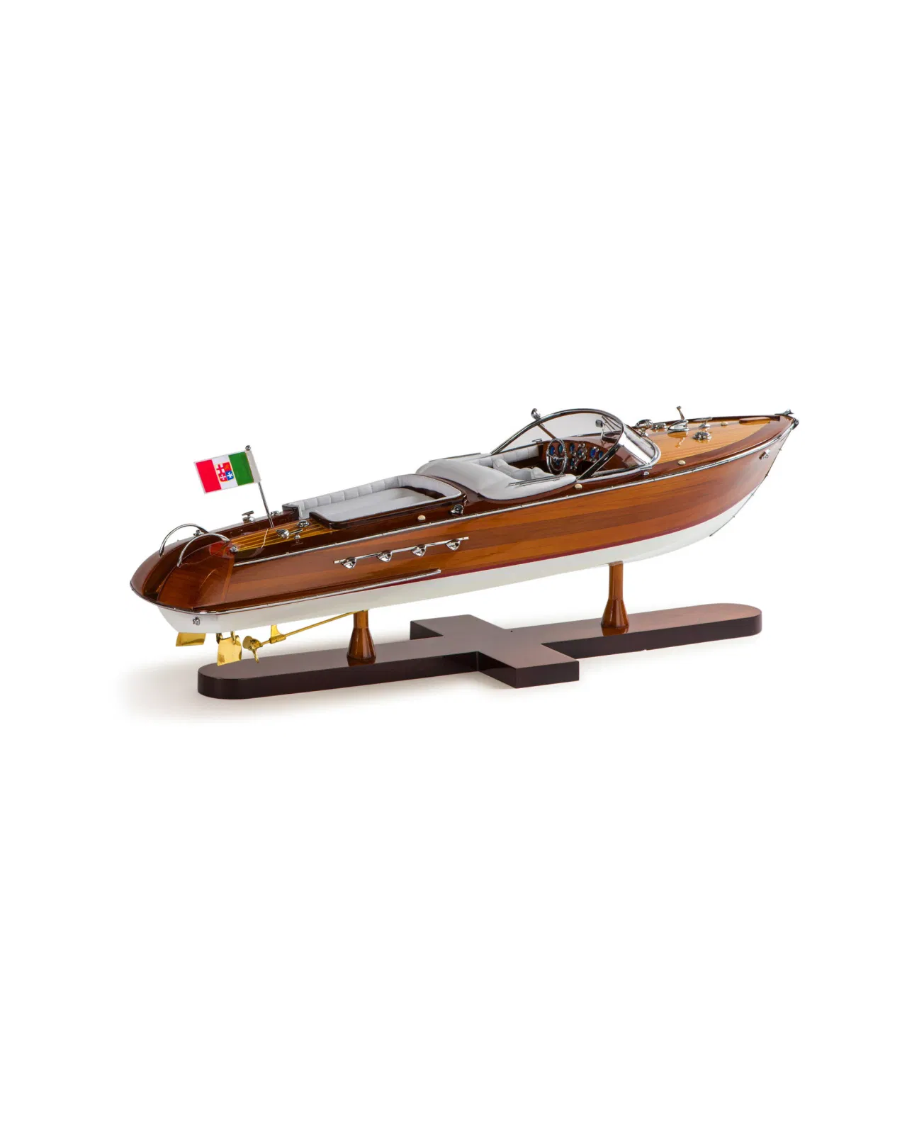 A beautiful and detailed model of the classic boat Aquarama with luxuriously dressed interior and details in wood and metal. The thoughts are immediately brought to the elegant yacht life of the 50s and 60s and is a perfect interior detail to place in the study or in the living room.