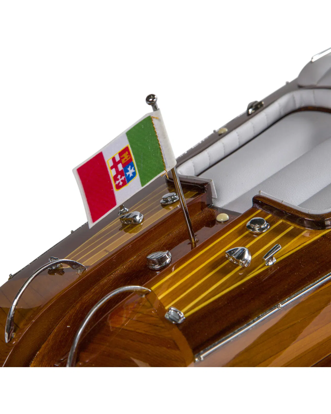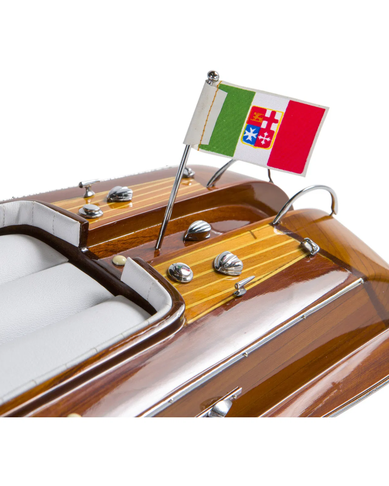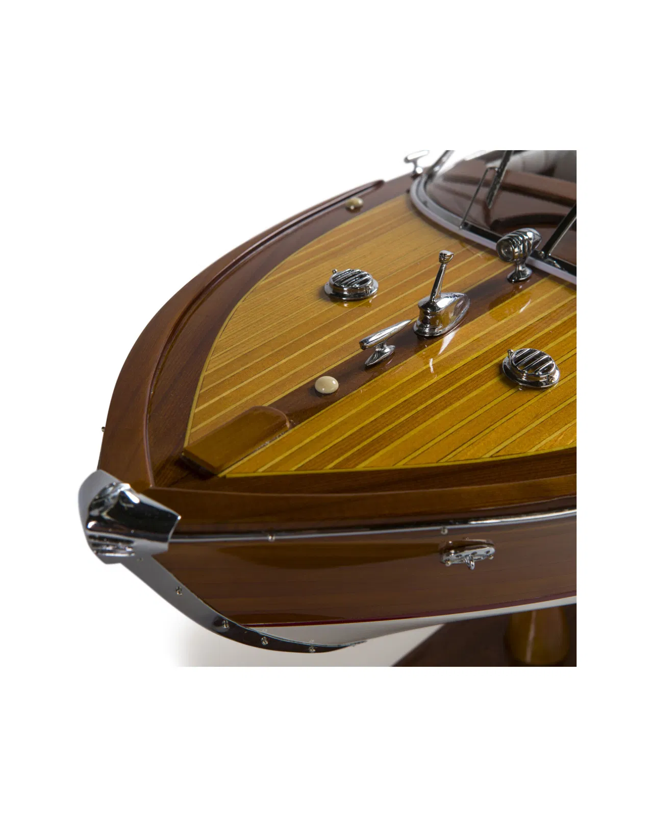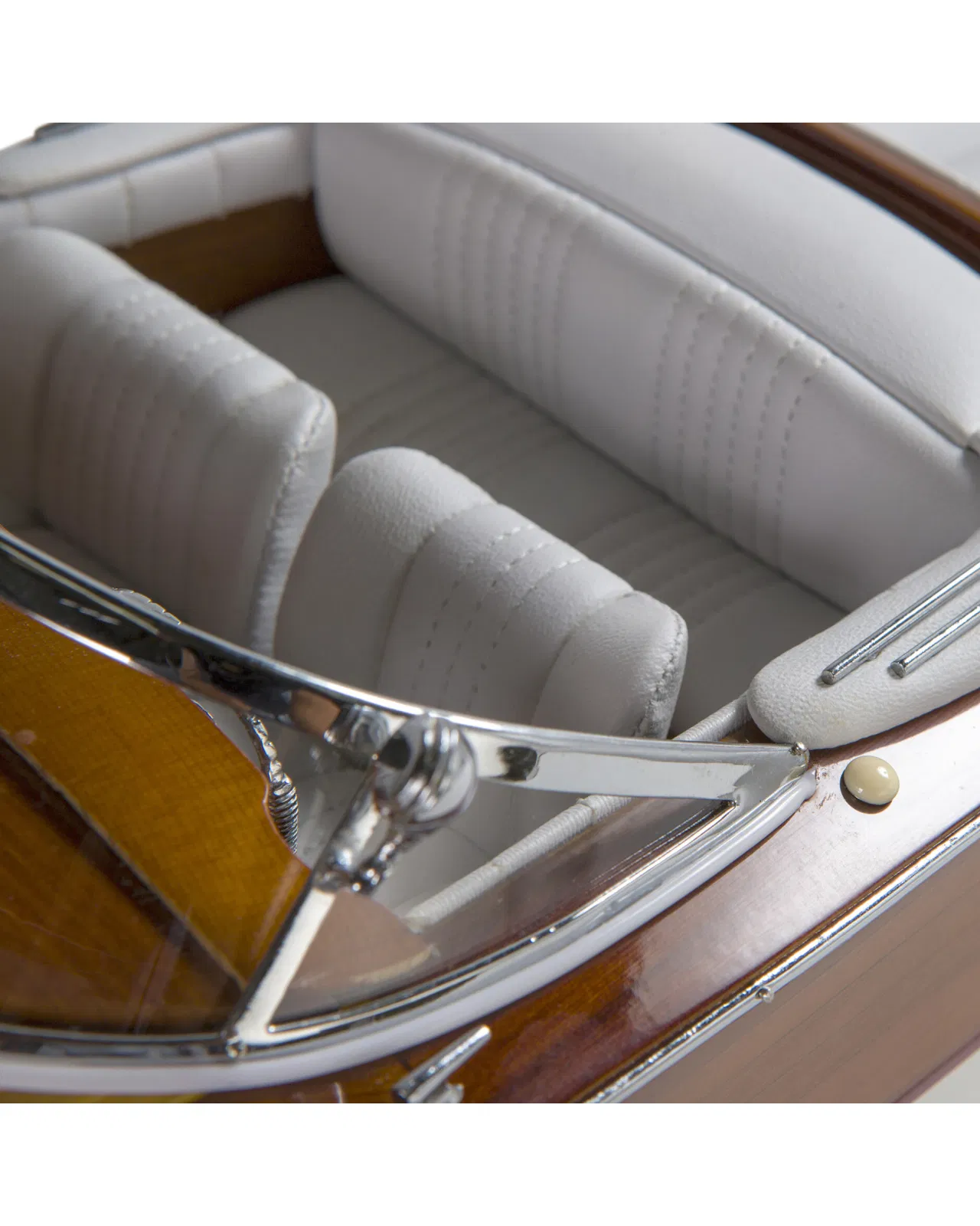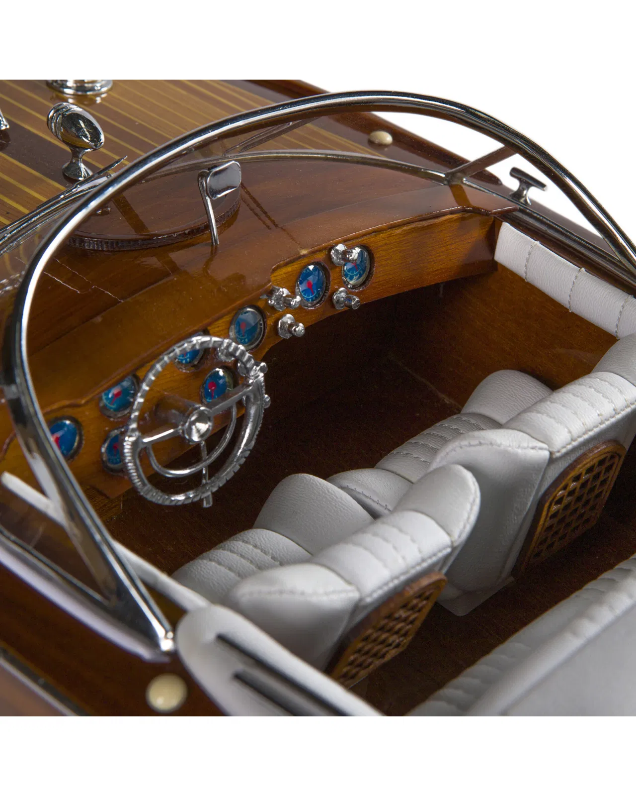 A beautiful and detailed model of the classic boat Aquarama with luxuriously dressed interior and details in wood and metal. The thoughts are immediately brought to the elegant yacht life of the 50s and 60s and is a perfect interior detail to place in the study or in the living room.