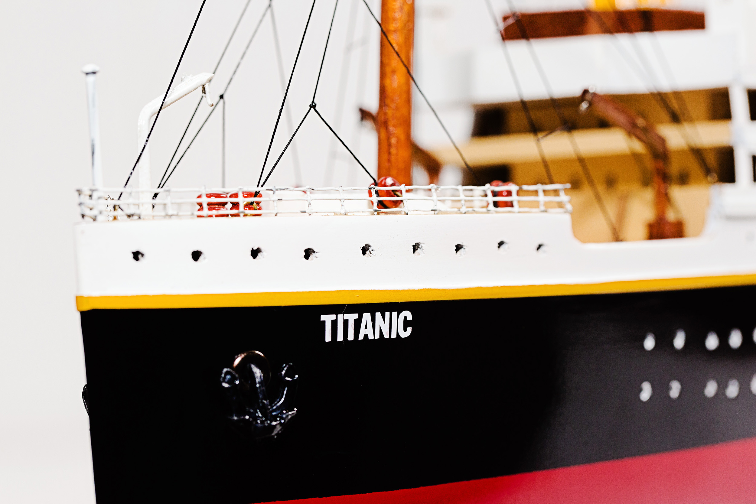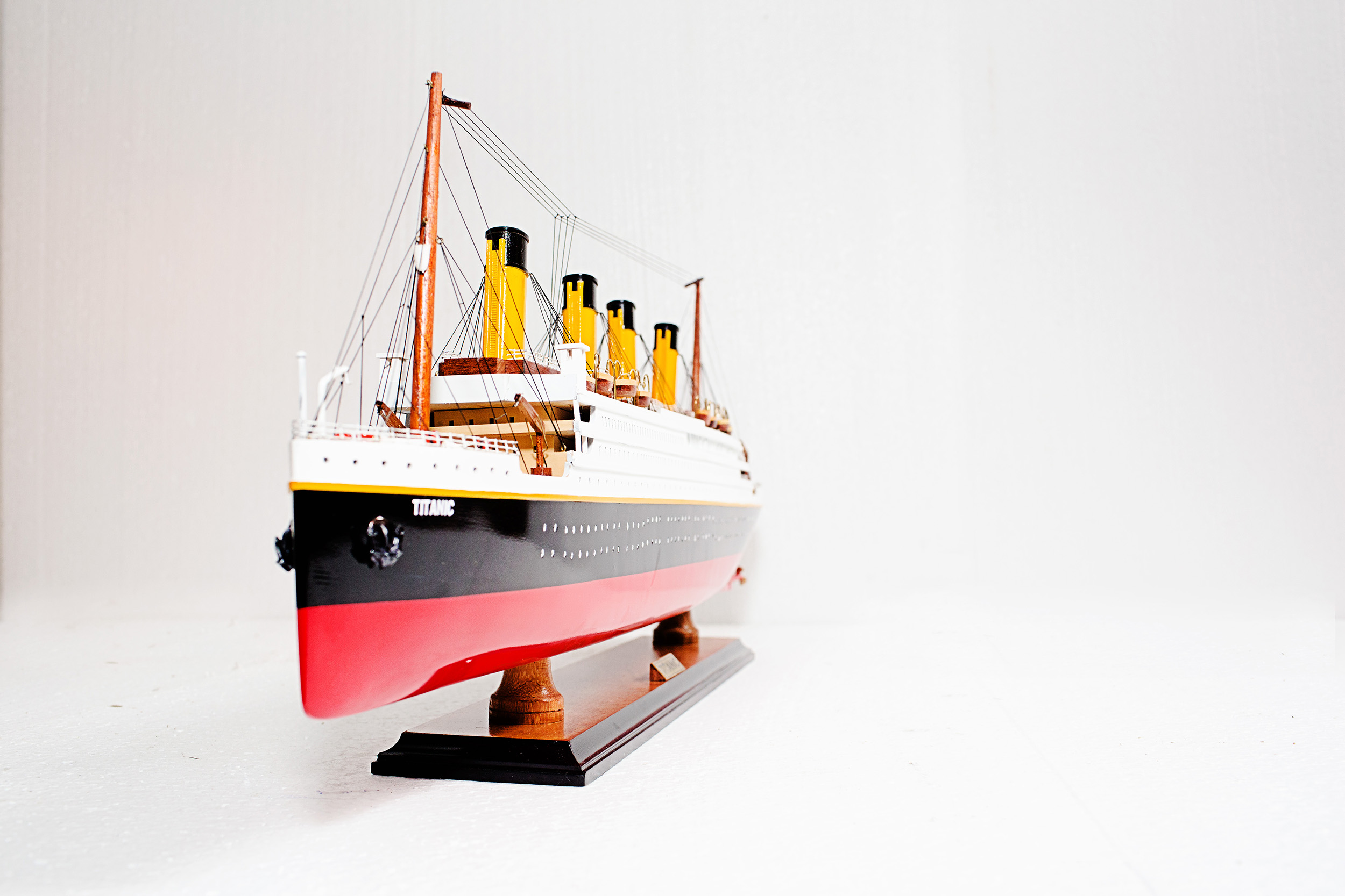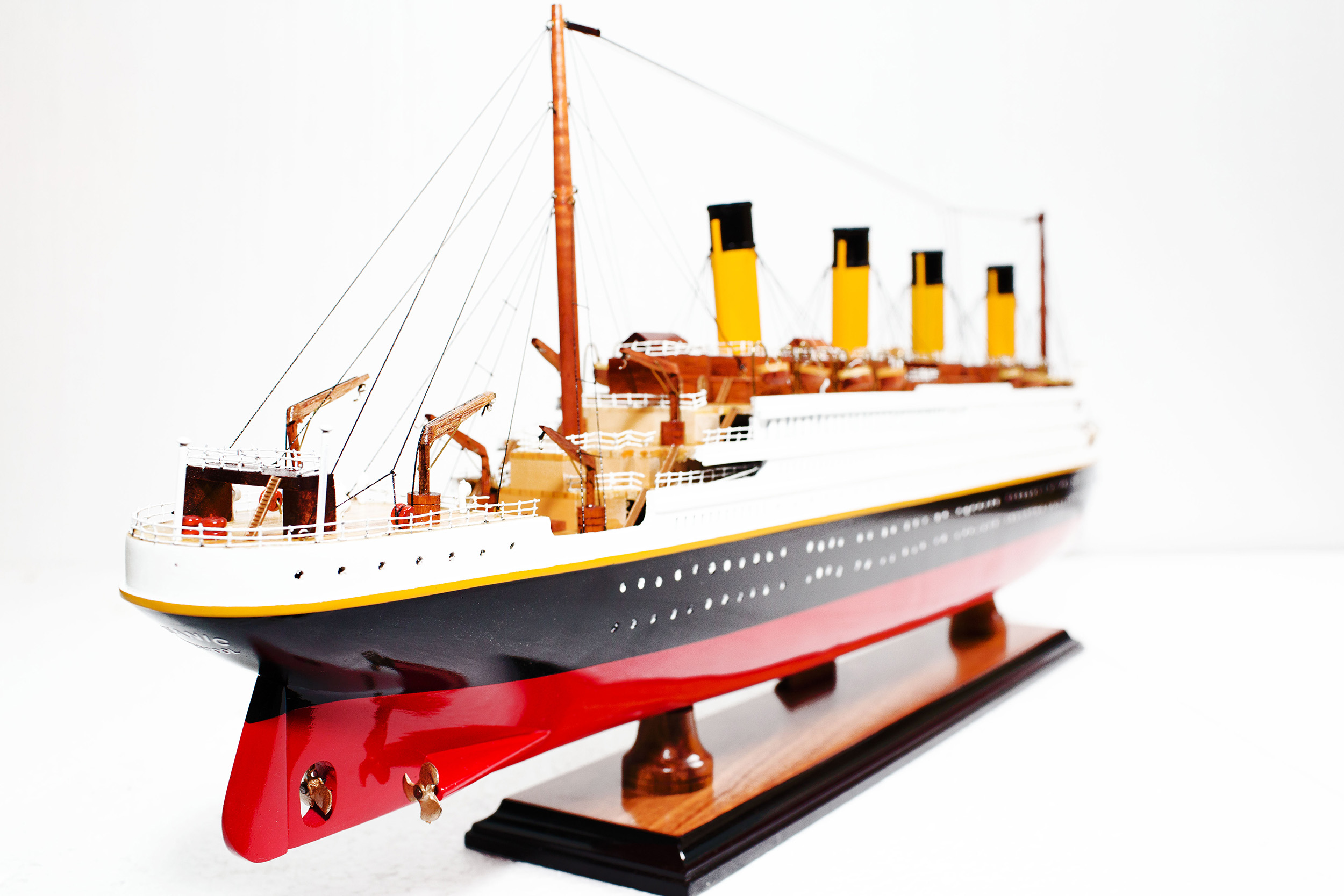 - Detailed features: lifeboats, rigging, painted funnels