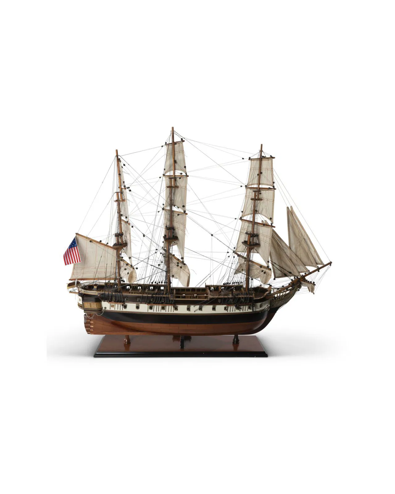 Magnificent model of the battleship USS Constellation which was one of six frigates whose construction was authorized by The Naval Act of 1794 . A perfect interior detail for the history buff and boat enthusiast. It is a model that deserves a proper place in the home where it can be seen and admired.