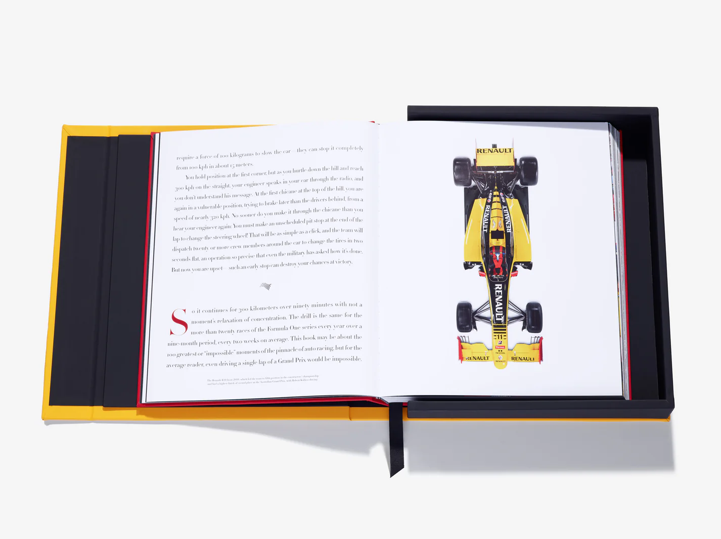 Scented with subtle notes of rubber, this striking edition immerses readers in the high-adrenaline world of Formula 1, where twenty elite drivers live at the edge of speed and pressure. Updated to reflect milestones like Red Bull’s recent dominance—and fueled by the global excitement from Drive to Survive, the new F1 film, and the sport’s seventy-fifth anniversary—the volume traces F1’s evolution from a 1950 gentlemen’s club to a worldwide phenomenon. Highlighting groundbreaking engineering, unforgettable races, and legends from Fangio and Senna to Hamilton and Verstappen, this handcrafted collector’s piece arrives with white gloves and a signature canvas tote to complete the experience.