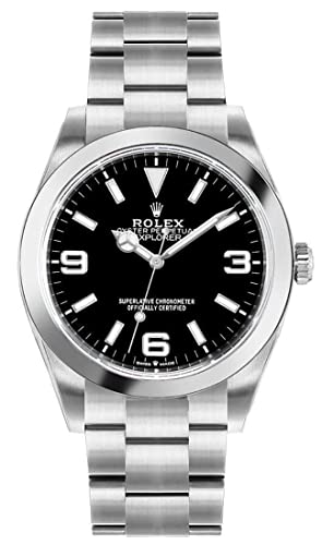 Details: Black dial. Silver-tone stainless steel case with a silver-tone stainless steel band. Automatic movement. 100 meters / 330 feet water resistance. Fixed bezel. Oysterlock clasp. Case size 36 mm. Rolex 124270BKASO Explorer Watch.