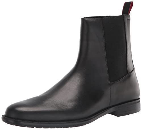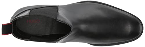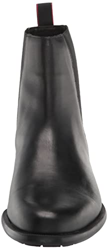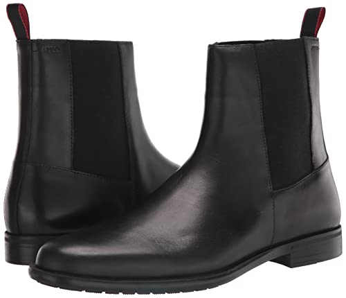 Details: This is a chelsea boot with a rubber sole and it is made out of contemporary leather. The chelsea boot is leather lined and very comfortable. There is a red tag at the top of boot to help pull on and off.