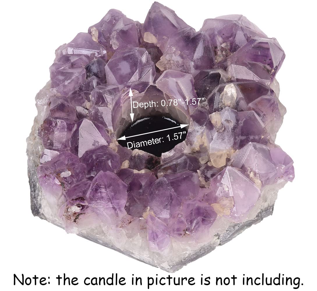 - ❥❥Size – This amethyst candle holder average width is 5.5″, average lengh is 4″, average height is 2.7″ ; Opening is 0.78-1.57″ in deep, 1.57″ in diameter. Irregular shape amethyst candle holder. (Candles not included)