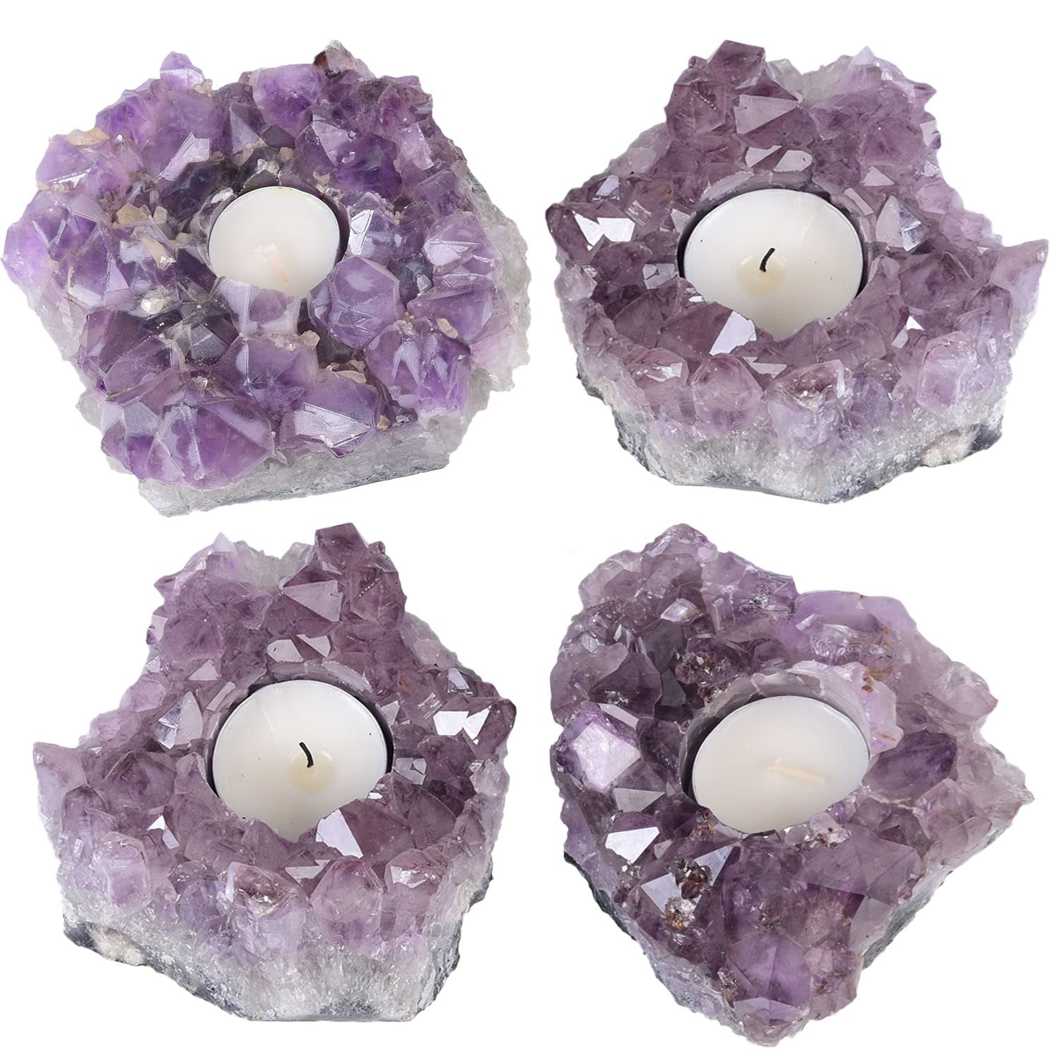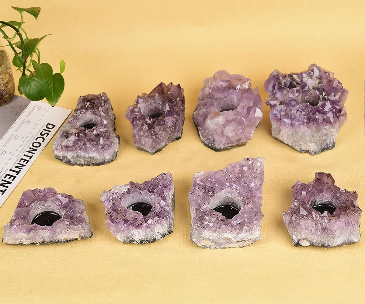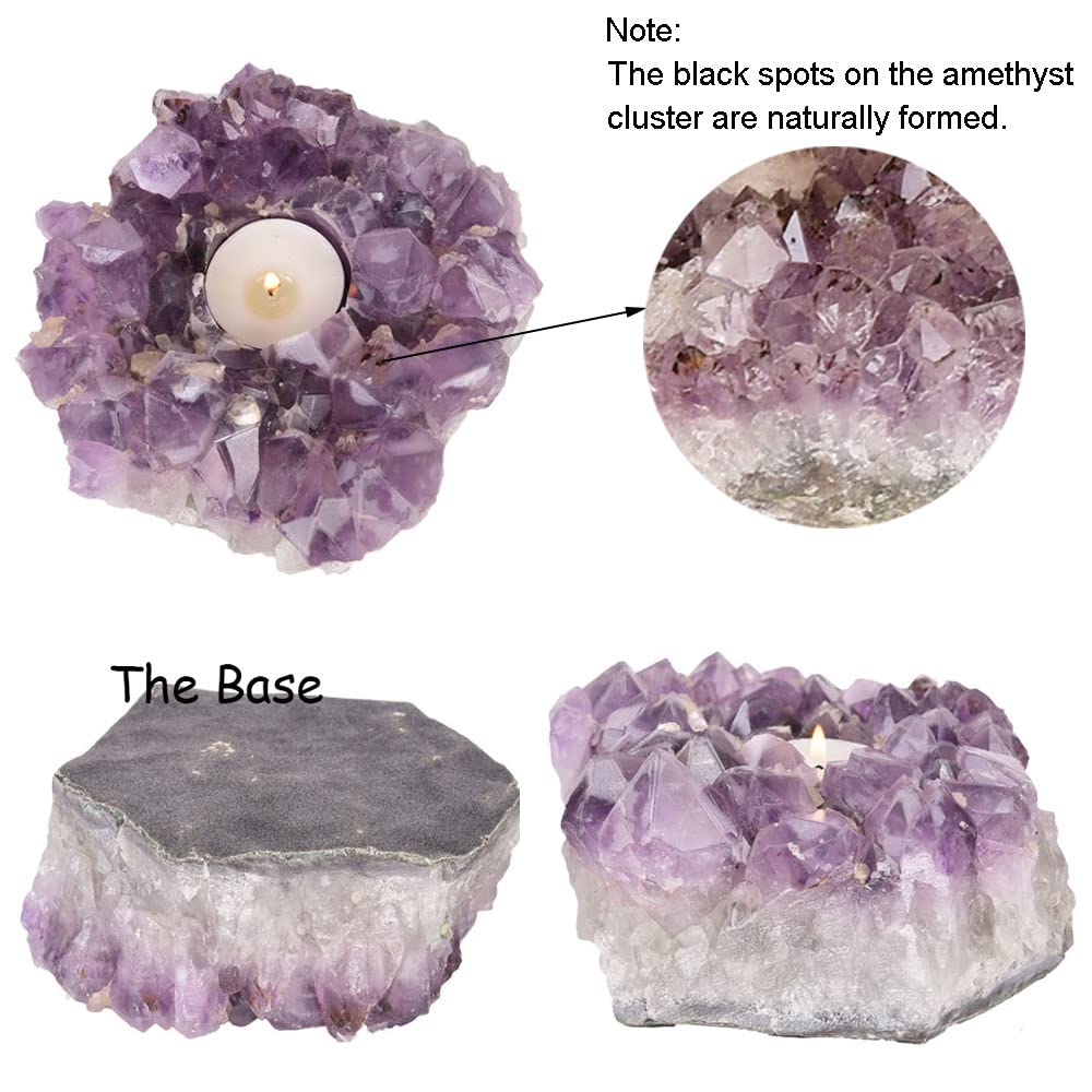 - ❥❥Unique – Made of Natural Amethyst Crystal Cluster with a unique appearance. Due to the nature of gemstone, carving may slightly vary in size, color and shape, each amethyst tealight holder is unique, vary from lot to lot.