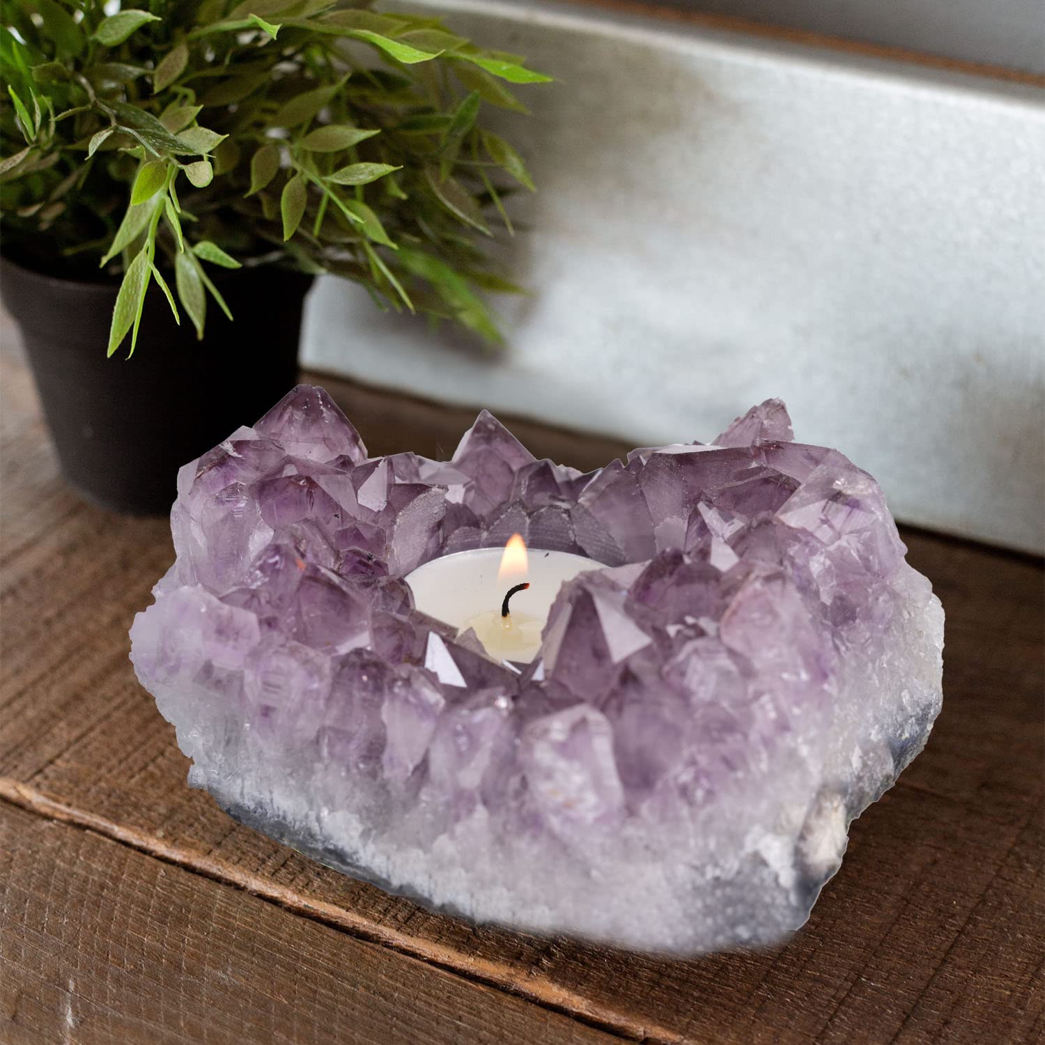 - ❥❥Multipurpose – Amethyst candle holder will beatify any tiny space in your house. Fits a tea light,taper candle or votive candle,also can be used for something creative such as an air plant or succulent holder.It will fit right at the center of a coffee table,bedside table.Great for meditation and yoga spaces.An elegant piece of art that can be used to brighten any room or setting and give it a natural feel!
