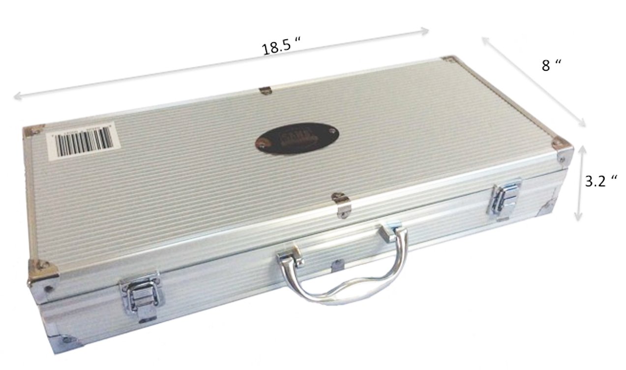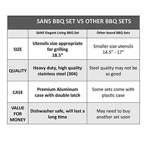 Details: SANS Elegant Living High Quality BBQ Grill Tool Set with Premium Aluminum Case