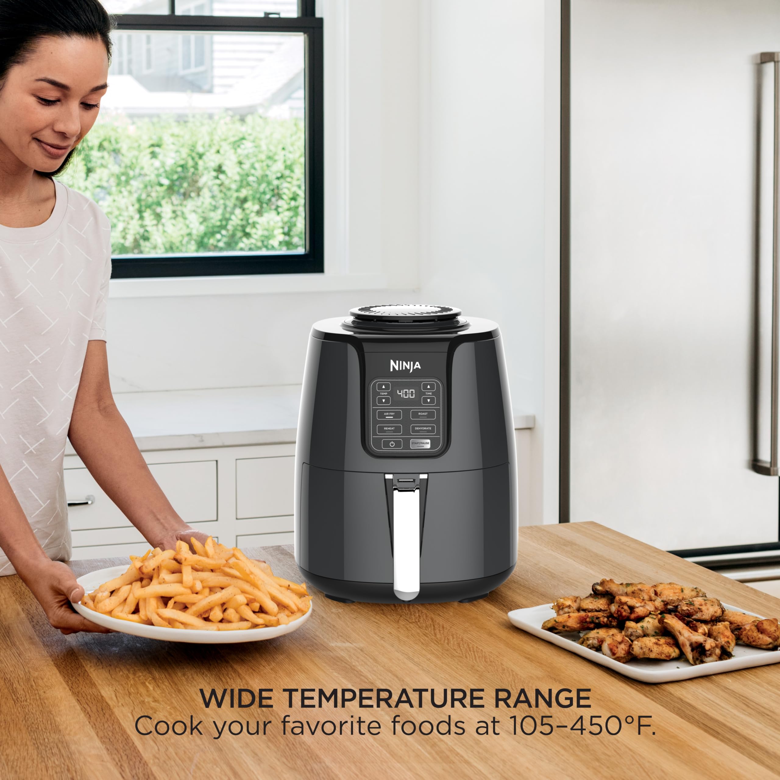 Details: Time is precious, even more so when you’ve got hungry mouths to feed. Why wait for your oven to preheat and then slowly cook that highly anticipated meal when there’s a quicker way to put food on the table for your whole family? Meet the Ninja Air Fryer, a fast and easy way to cook your favorite foods. It ensures even circulation of hot air around your food for quick, crispy, and golden finishes, every time. The secret is the smart processor that delivers a wide temperature range while powering the fan that automatically adjusts speeds based on your cooking function, allowing you to cook and crisp your favorite foods, like 2 lbs. of French fries, using little to no oil in a family-sized 4-quart ceramic-coated basket. The wide temperature range gives you the ability to roast, bake, air fry, reheat, or dehydrate foods, making it your new go-to appliance for any meal or snack. With the Ninja Air Fryer on your countertop, you can pull crispy meals out of thin air.