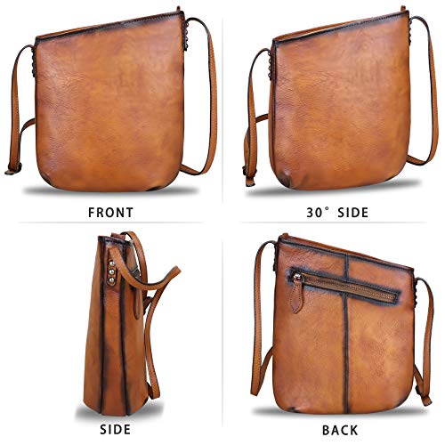 Genuine Leather Crossbody Bags for Women Retro Satchel Purse Handmade Small Designer Cute Shoulder Bag (Brown)