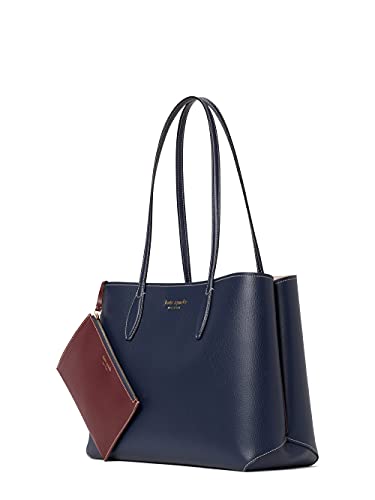 Details: Kate Spade New York® All Day Large Tote helps you carry what you want and includes a drop pocket for when you only want to take what you need. Detachable drop-in zip pouch with strap. Kate Spade New York® logo at front. Double hand strap for easy carry. Constructed of leather. Textile lining. Imported. Measurements: Bottom Width: 19 in Depth: 5 in Height: 13 in Strap Length: 25 in Strap Drop: 11 in Weight: 1 lb 10 oz Please note, the hardware color and interior lining may differ from the color shown in the photo.