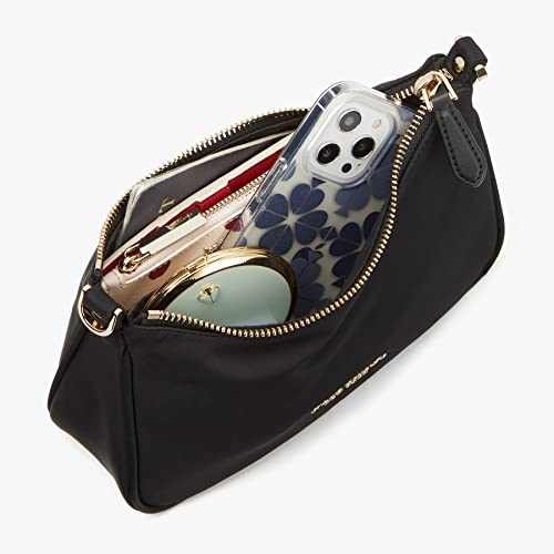Details: Keep it simple and functional with this classic Kate Spade New York Sam Nylon Small Crossbody. 60% nylon, 40% recycled nylon. Fully lined interior. Webbed, optional strap with lobster claw closures can be worn over the shoulder or crossbody. Zipper closure to main compartment. Interior features zipper and slip pocket. Stamped brand signature on bag front. Imported.