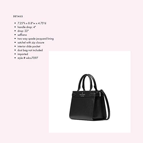 Details: Kate Spade New York Staci Small Saffiano Leather Satchel Bag Authentic kate spade, dust bag not included Saffiano exterior, two-way spade jacquard lining Exterior back and rear slip pockets, interior slide, and zip pocket Zip-top closure, removable and adjustable strap for crossbody or shoulder wear Small in size: 4.25L X 7H X 9W inches approximate