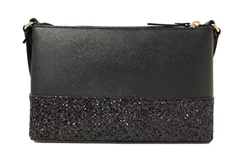 Details: Kate Spade Ramey Greta Court Glitter Saffiano Leather Crossbody Bag Black