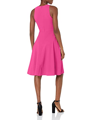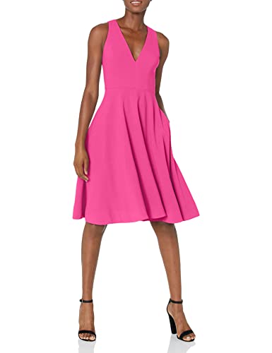 Details: Sleeveless plunging A-line crepe knee length dress with pockets.