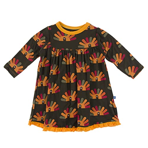 KicKee Pants Thanksgiving Fall Turkey Swing Dress for Girls, Long Sleeves, Super Soft Baby and Kid Clothes (Bark Turkey – 3T)