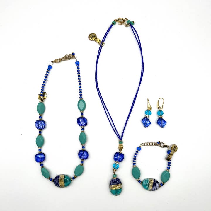 Murano glass necklace, bracelet, and earring set (Blue).